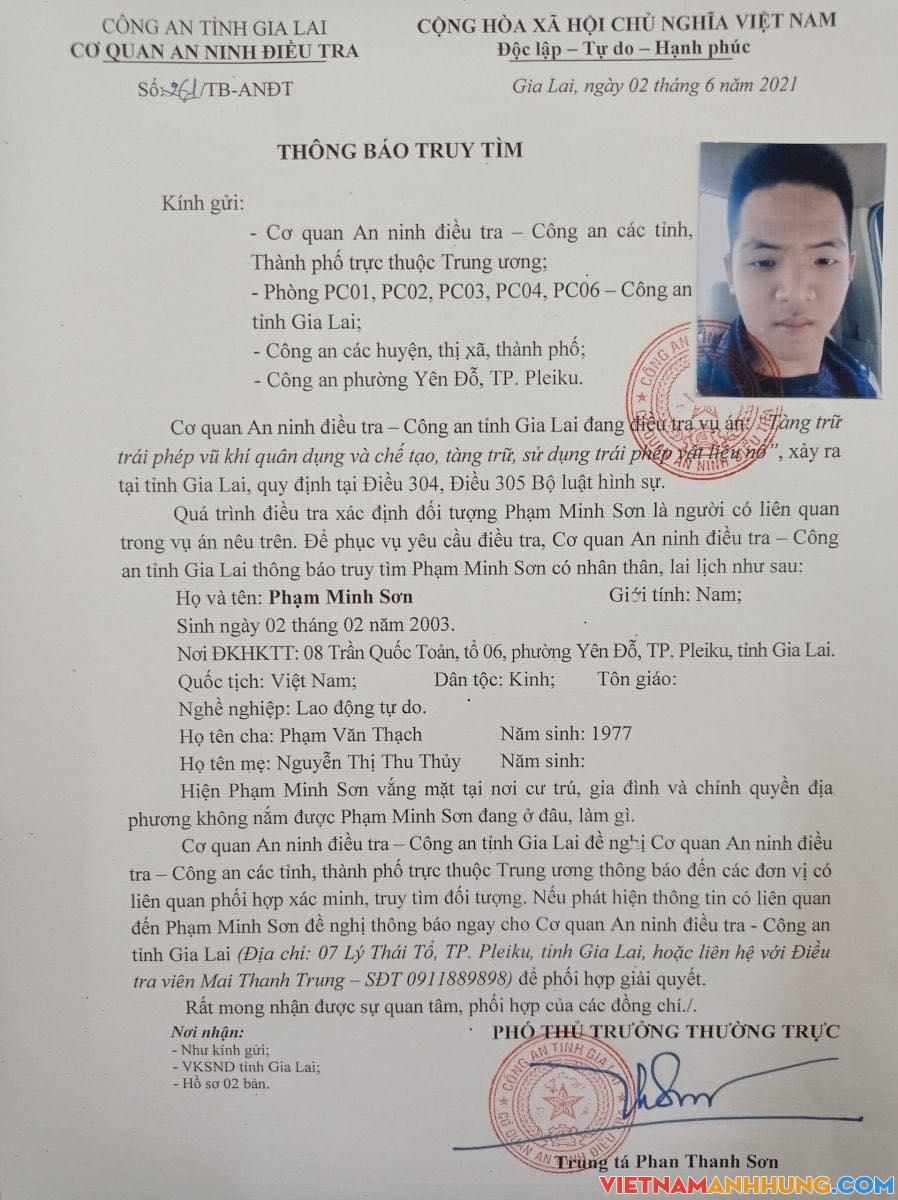 – Phạm Minh Sơn (SN 02/02/2003, trú tại 08 Trần Quốc Toản, tổ 6, phường Yên Đỗ, TP. Pleiku).