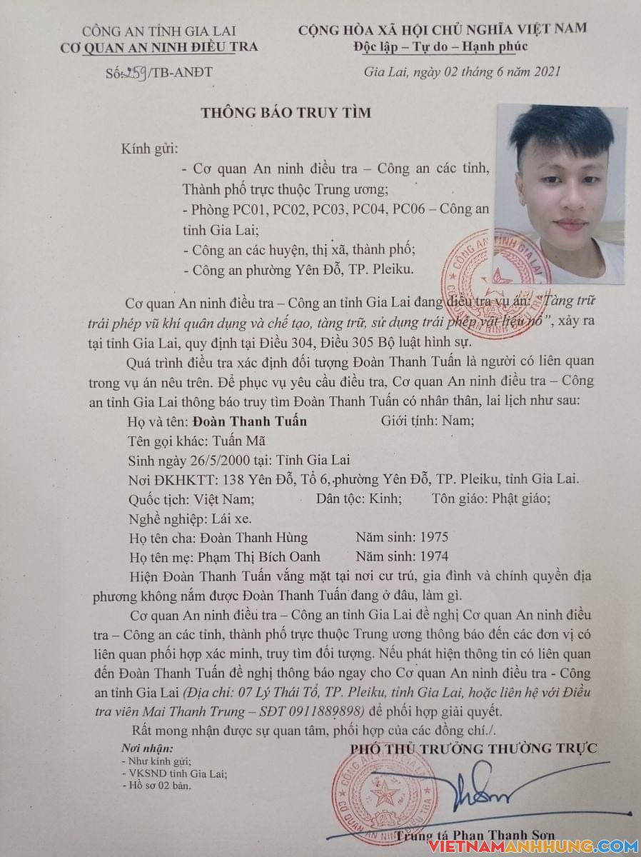 – Đoàn Thanh Tuấn (SN 26/5/2000, trú tại 138 Yên Đỗ, tổ 6, phường Yên Đỗ, TP. Pleiku).