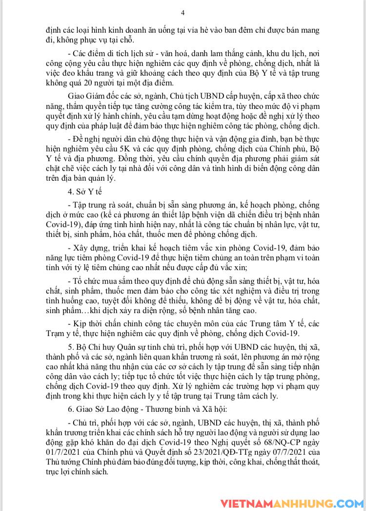 – Tiếp tục tạm dừng hoạt động các quán bar/pub, vũ trường, karaoke, các dịch vụ massage xông hơi trên địa bàn tỉnh cho đến khi có thông báo mới.
