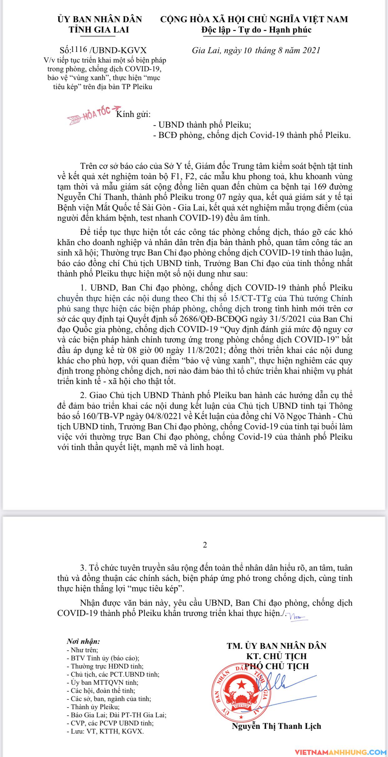 1. UBND, Ban Chỉ đạo phòng, chống dịch COVID-19 thành phố Pleiku