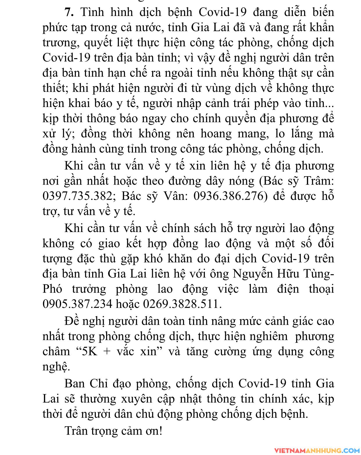 Ban Chỉ đạo phòng, chống dịch Covid-19 tỉnh Gia Lai thông tin công tác triển khai phòng, chống dịch Covid-19 trên địa bàn tỉnh Gia Lai như sau: