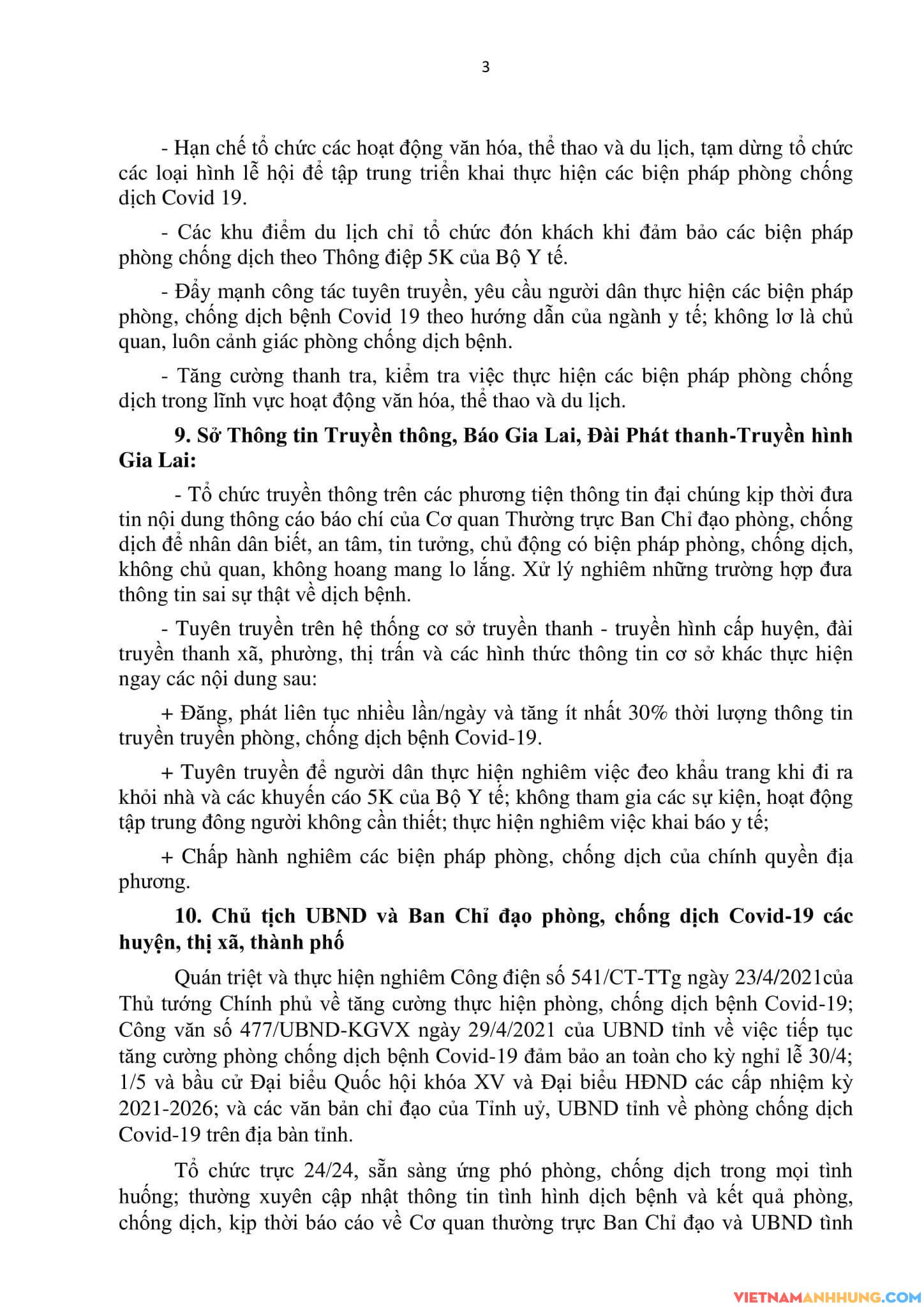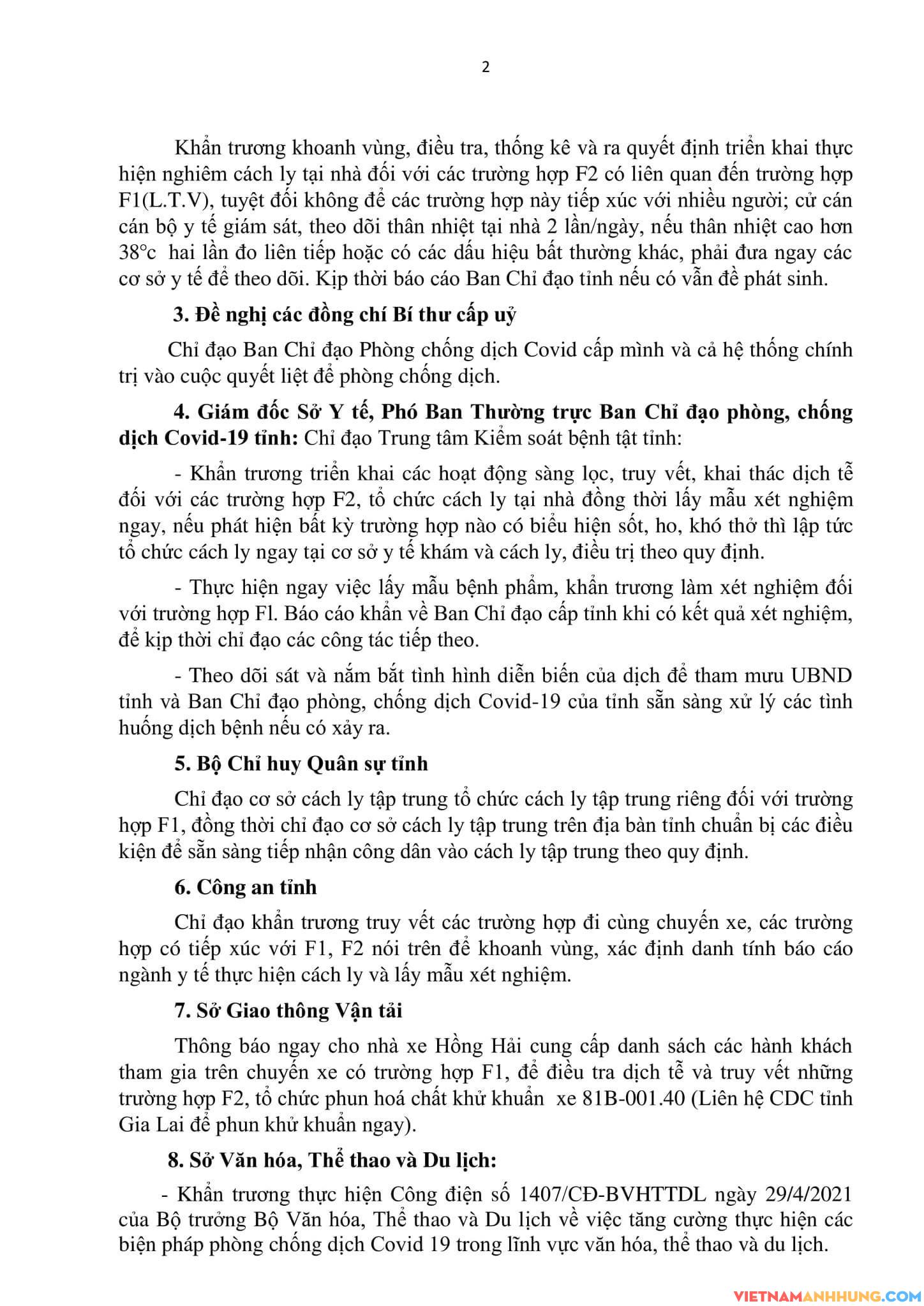 Công văn khẩn của BCĐ phòng chống dịch tỉnh Gia Lai về triển khai một số nội dung cấp bách trong công tác phòng chống dịch bệnh
