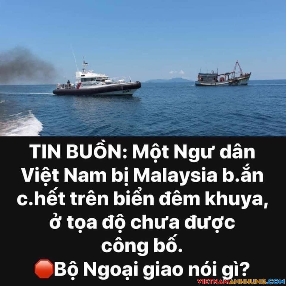 Cơ quan thực thi hàng hải Malaysia đã b.ắn c.hết 1 ngư dân Việt Nam và bắt giữ 18 người khác với lý do những người này chống trả buộc họ phải tự vệ. Sự việc xảy ra trong đêm khuya, ở tọa độ chưa được công bố.