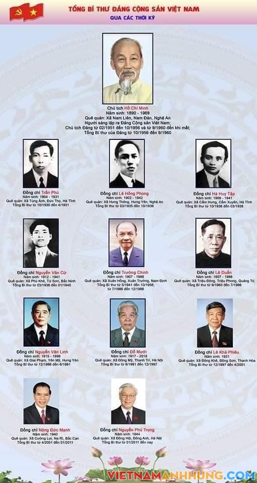 Các đồng chí Tổng Bí thư (hoặc Bí thư thứ nhất) của Đảng qua các thời kỳ: