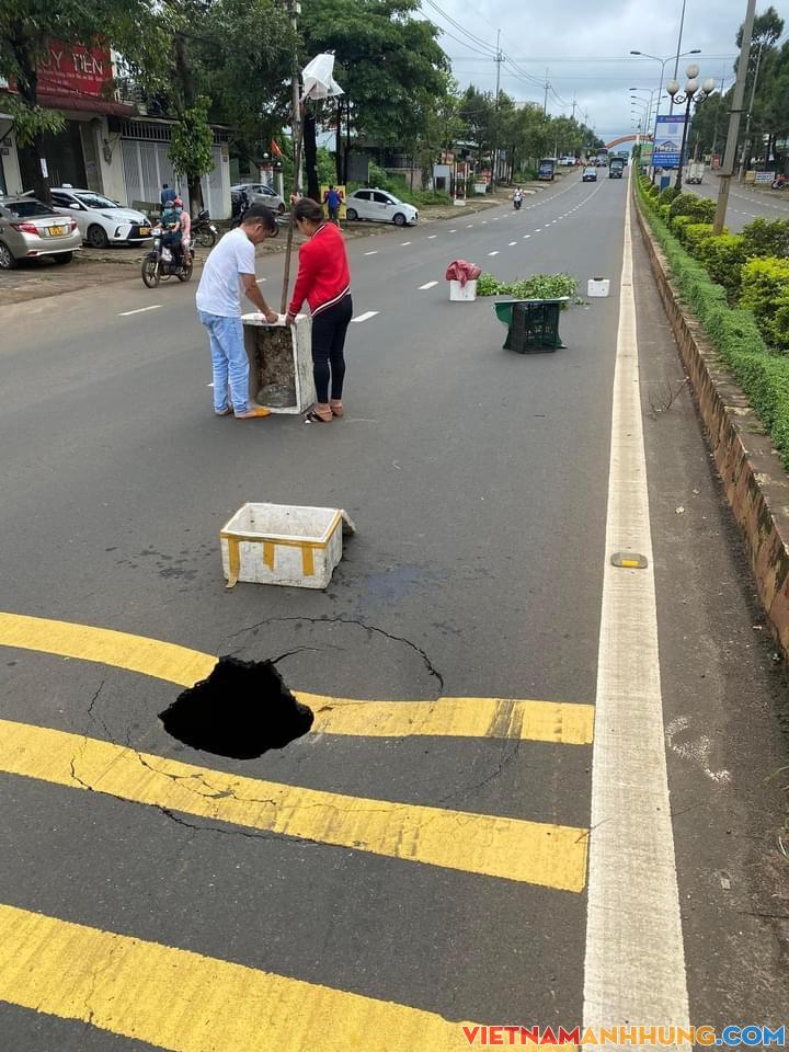 Cảnh báo nguy hiểm: Xuất hiện hố sụp cống trên đường