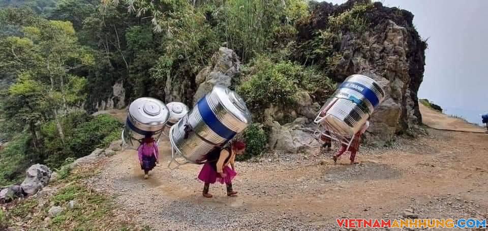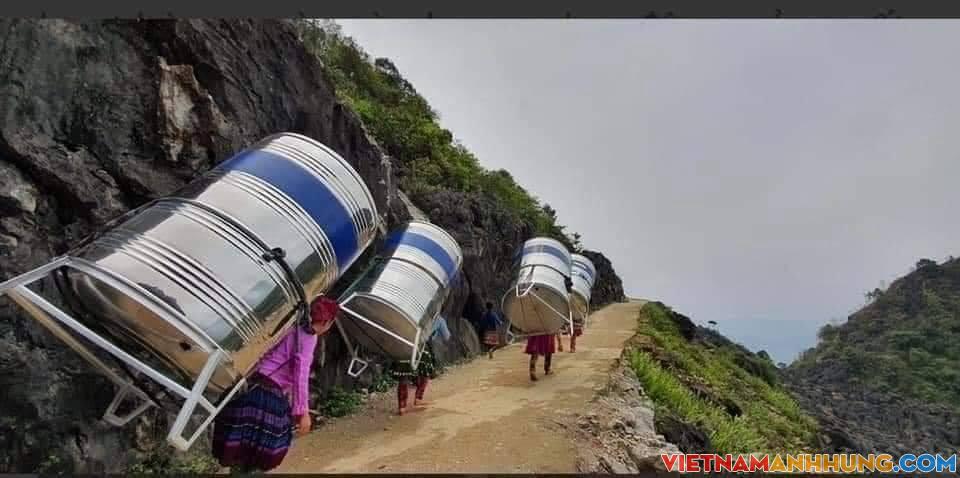 Không hiểu bằng sức lực và cách nào những phụ nữ ở xã Sủng Trái (Đồng Văn, Hà Giang) vùng Cao nguyên đá lại có thể cõng bồn nước 1200 lít băng rừng vượt dốc thế này!?