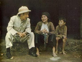 Ảnh: Bác trò chuyện với dân làng Lâm Xuyên, tỉnh Bắc Giang, năm 1955