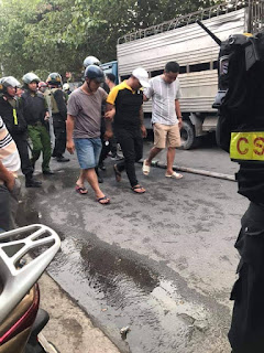 Khi công an đến hiện trường giải quyết vụ việc, Hưng cố thủ trong nhà cùng bình gas, dọa cho nổ tự sát và cầm vật giống lựu đạn đe dọa ném vào công an. Công an sau đó phong tỏa hiện trường.