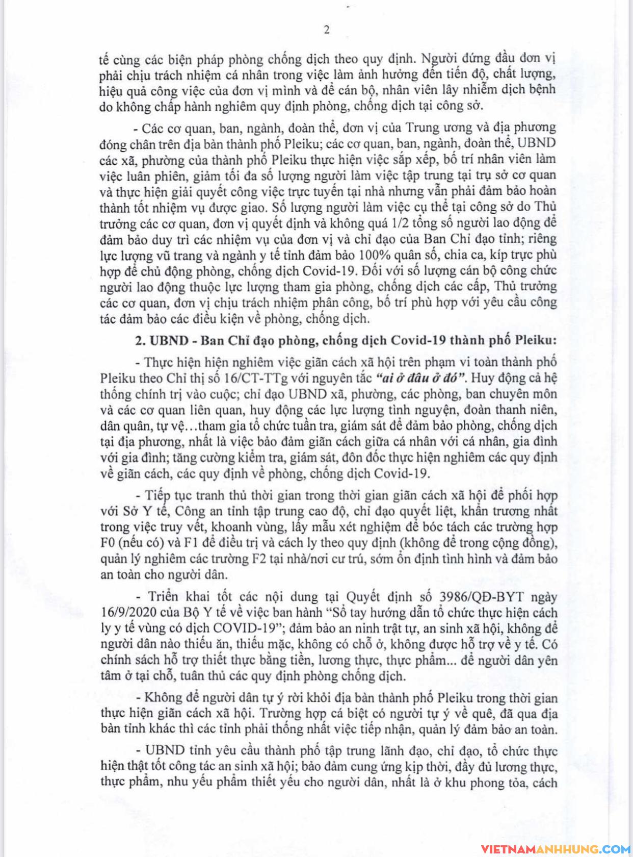 Thực hiện giãn cách xã hội trên phạm vi toàn thành phố Pleiku kể từ 00 giờ 00 phút, ngày 28/8/2021 theo chỉ thị số 16/CT-TTg, ngày 31/3/2020 của Thủ tướng Chính phủ và gọi tắt là chỉ thị 16.