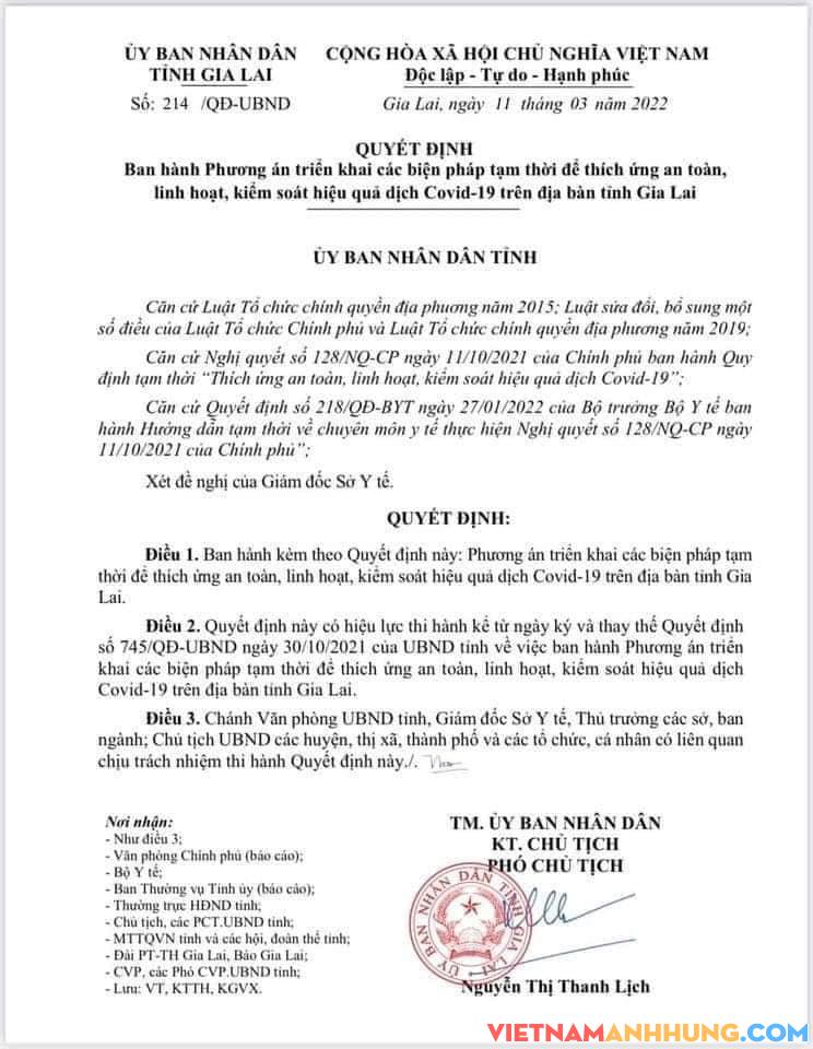 Ngày 11-3, UBND tỉnh có Quyết định số 214/QĐ-UBND ban hành Phương án triển khai các biện pháp tạm thời để thích ứng an toàn, linh hoạt, kiểm soát hiệu quả dịch Covid-19 trên địa bàn.