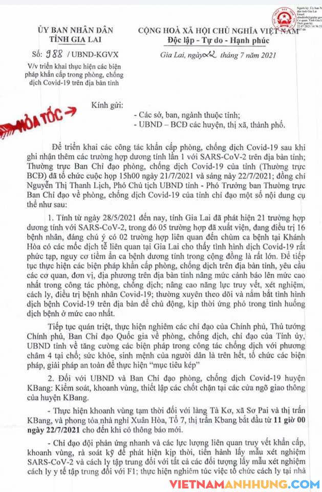 Văn phòng UBND tỉnh Gia Lai vừa có văn bản số 3190/VP-KGVX thông báo ý kiến của Trưởng ban Chỉ đạo phòng-chống...