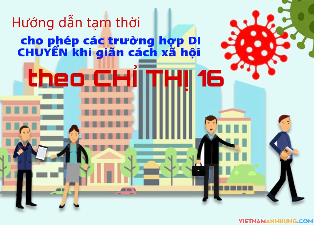 Hướng dẫn về các trường hợp được di chuyển trong khi thực hiện giãn cách xã hội theo Chỉ thị 16