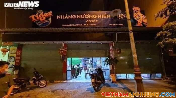 Tối 19/8, đoàn liên ngành TP Bắc Ninh (tỉnh Bắc Ninh) kiểm tra công tác đảm bảo ATTP và công tác phòng chống COVID-19 tại quán Nhắng nướng Hiền Thiện (số 42 đường Nguyễn Đăng Đạo, phường Đại Phúc, TP Bắc Ninh). Đây là quán ăn đang gây bức xúc dư luận vì bắt cô gái qu .ỳ gối xin lỗi khi “b óc ph.ốt” đồ ăn có sán.