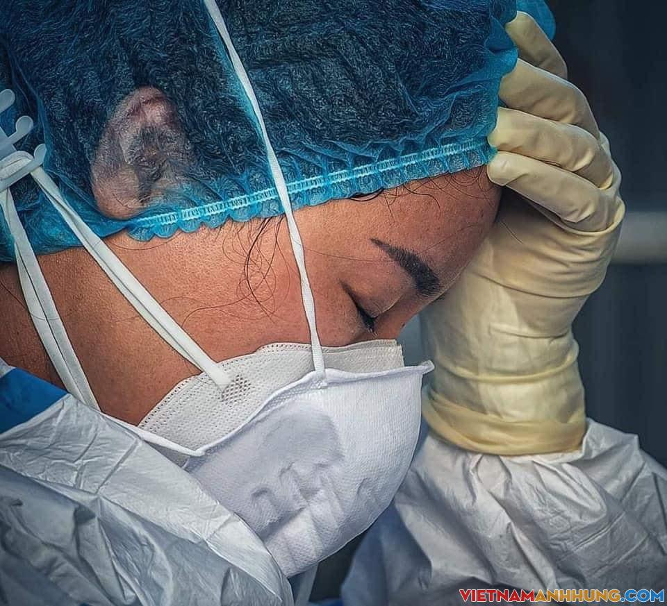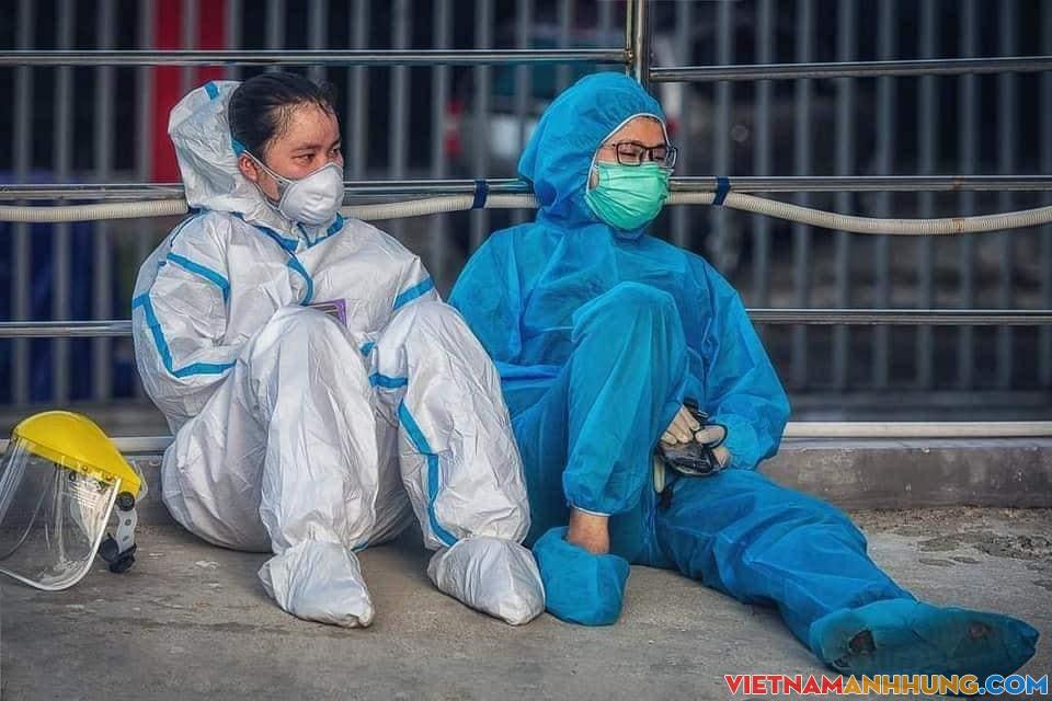 Phút nghỉ ngơi của nhân viên y tế sau khi lấy mẫu xét nghiệm Covid-19 cho người nước ngoài tại quận Sơn Trà (Đà Nẵng).