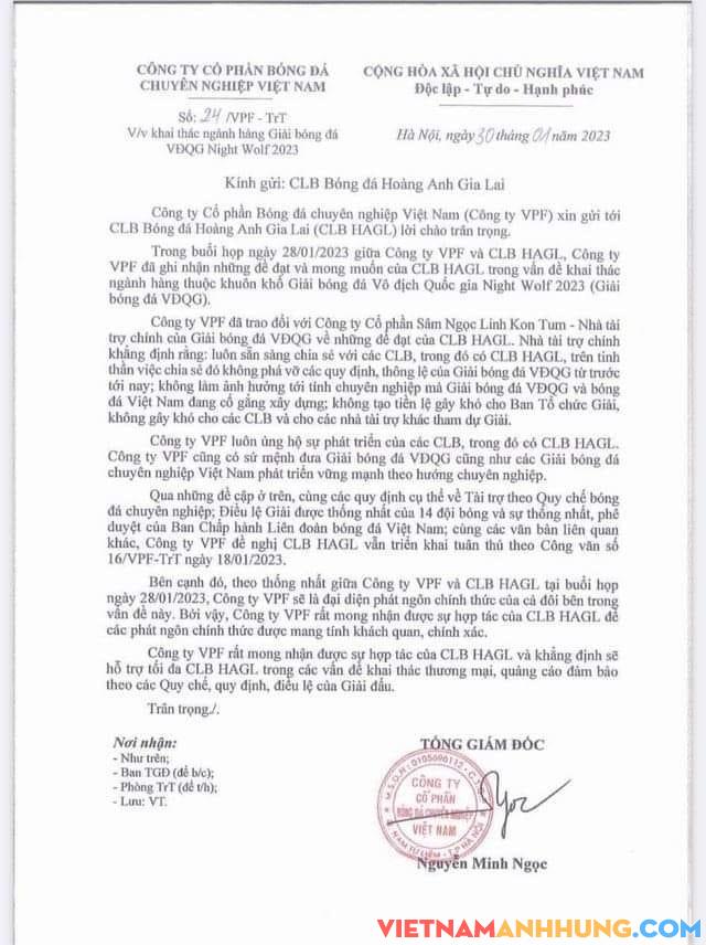 Thời điểm Khai mạc V-League 2023 đã cận kề. Tưởng chừng VPF với HAGL đã tìm được tiếng nói chung, nhưng sự thật là VPF vẫn giữ quan điểm không chấp nhận nhà tài trợ Carabao.