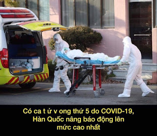 Ngoài ra, giới chức y tế nước này cũng cho biết, đã có ca tử vong thứ 5 vì Covid-19. Người này là một nữ bác sĩ ở độ tuổi 50. Cô đã tử vong vào lúc 2h40 chiều 23/2 tại bệnh viện trường Đại học Quốc gia Kyungpook. Đây là ca tử vong đầu tiên ở Deagu, nơi bùng phát và ghi nhận hàng trăm ca nhiễm bệnh mấy ngày qua.