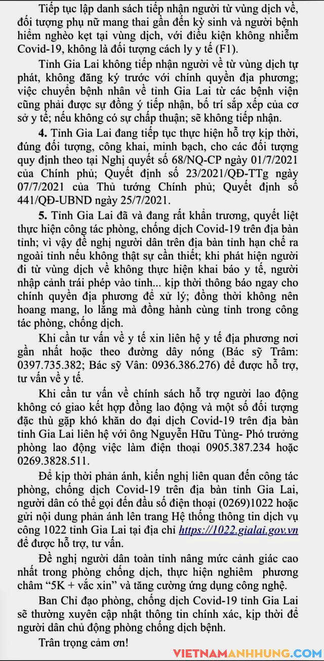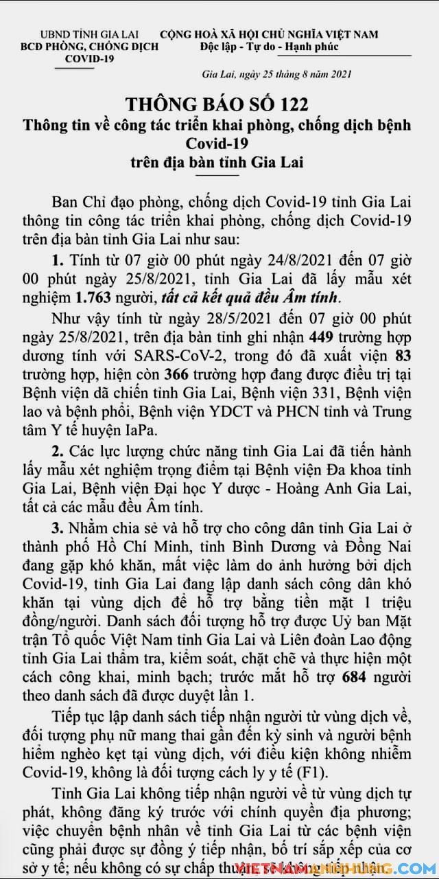 Thông báo 122: Ngày 25/8/2021 Gia Lai chưa ghi nhận ca nhiễm mới