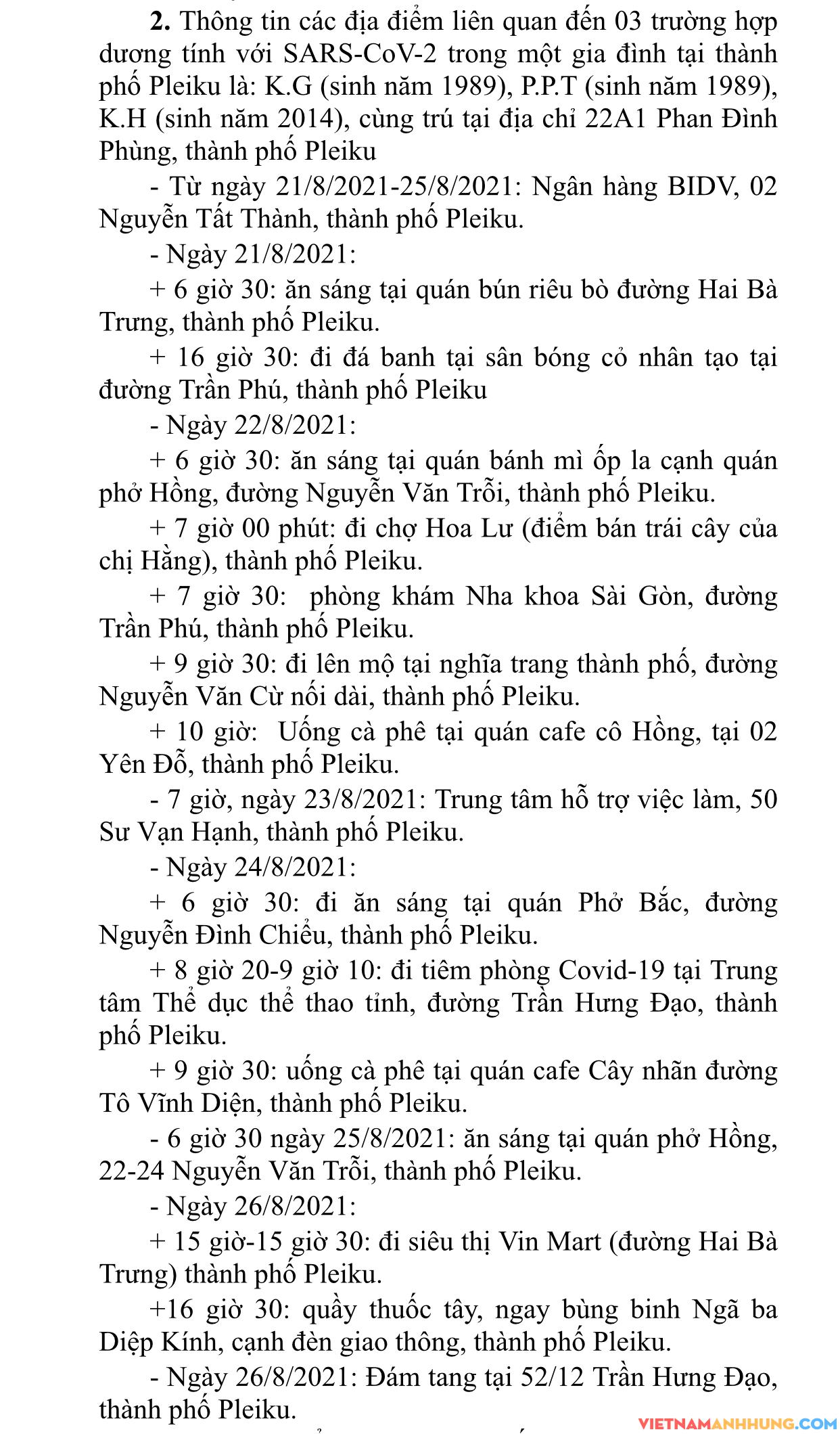 – 03 trường hợp là: K.G, P.P.T, K.H là người trong một gia đình tại thành phố Pleiku.