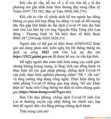 Ban Chỉ đạo phòng, chống dịch Covid-19 tỉnh Gia Lai thông tin về công tác phòng chống dịch trên địa bàn tỉnh Gia Lai như sau: