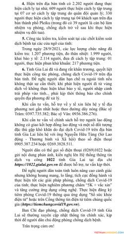 Ban Chỉ đạo phòng, chống dịch Covid-19 tỉnh Gia Lai thông tin về công tác phòng chống dịch trên địa bàn tỉnh Gia Lai như sau: