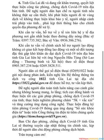 Ban Chỉ đạo phòng, chống dịch Covid-19 tỉnh Gia Lai thông tin về công tác phòng chống dịch trên địa bàn tỉnh Gia Lai như sau: