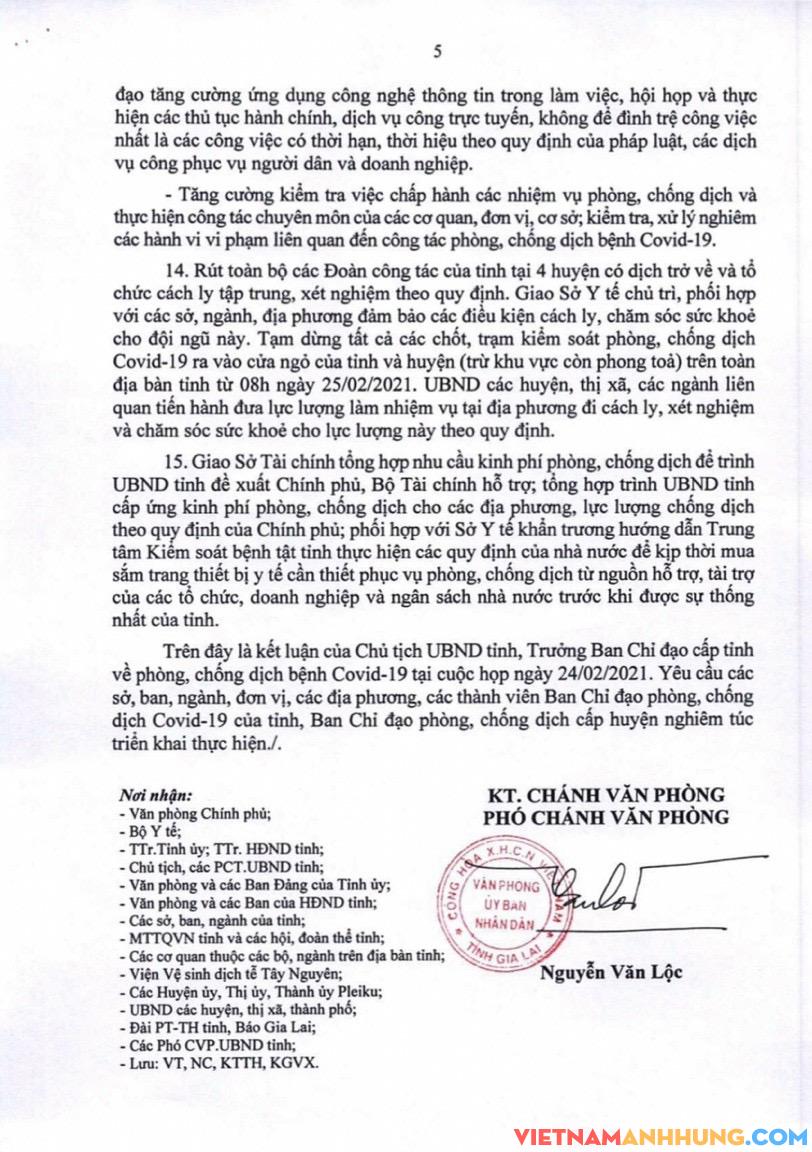 Thông báo kết luận của Chủ tịch UBND tỉnh tại cuộc họp trực tuyến của Ban chỉ đạo phòng chống dịch bệnh Covid-19 của tỉnh ngày 24/02/2021