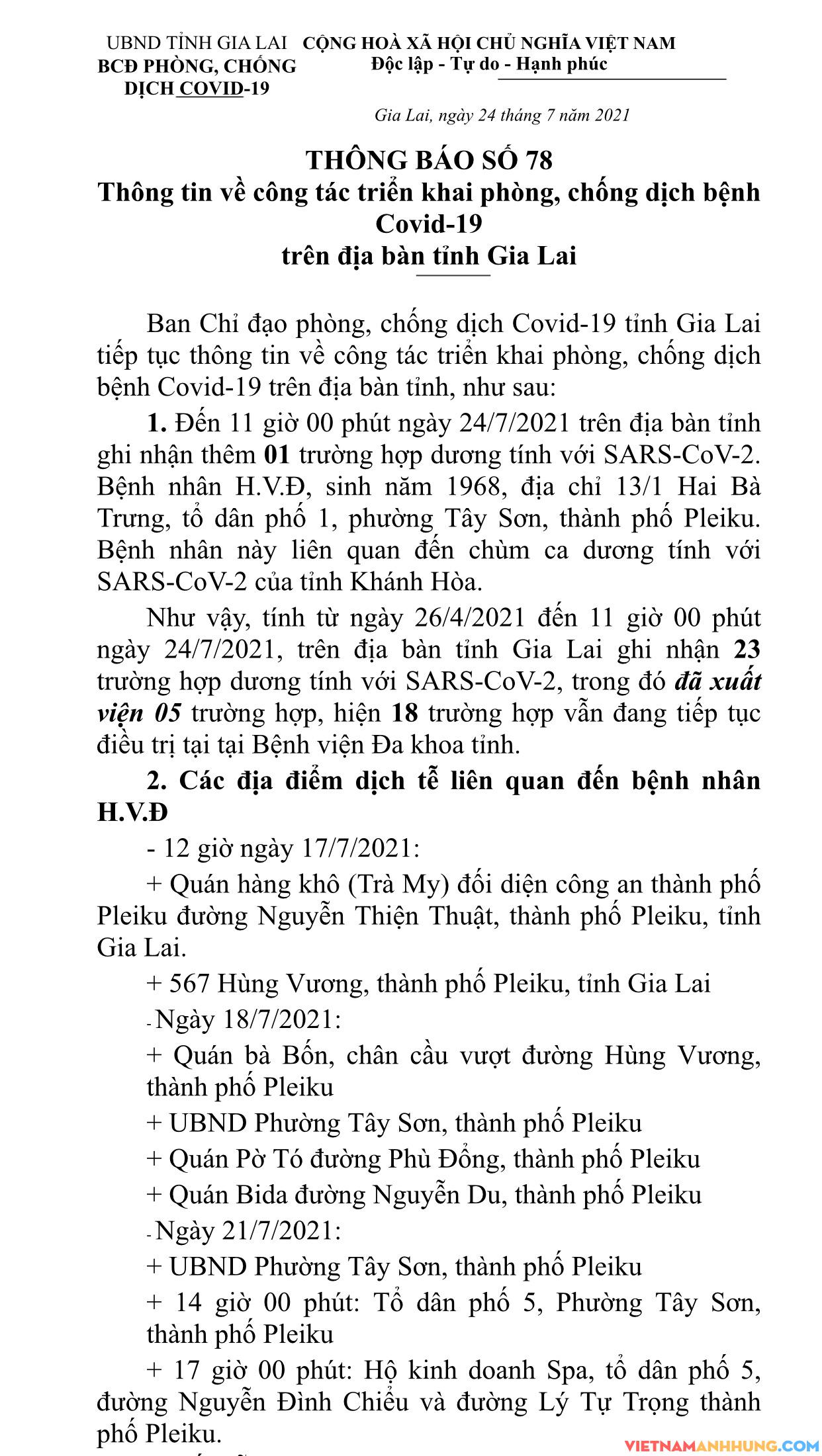 Ban Chỉ đạo phòng, chống dịch Covid -19 tỉnh Gia Lai thông báo những ai đã đến các địa điểm sau đây cần thực hiện cách ly tại nhà và khẩn trương liên hệ với cơ sở y tế gần nhất hoặc gọi đến số điện thoại đường dây nóng để được hỗ trợ, tư vấn theo quy định.