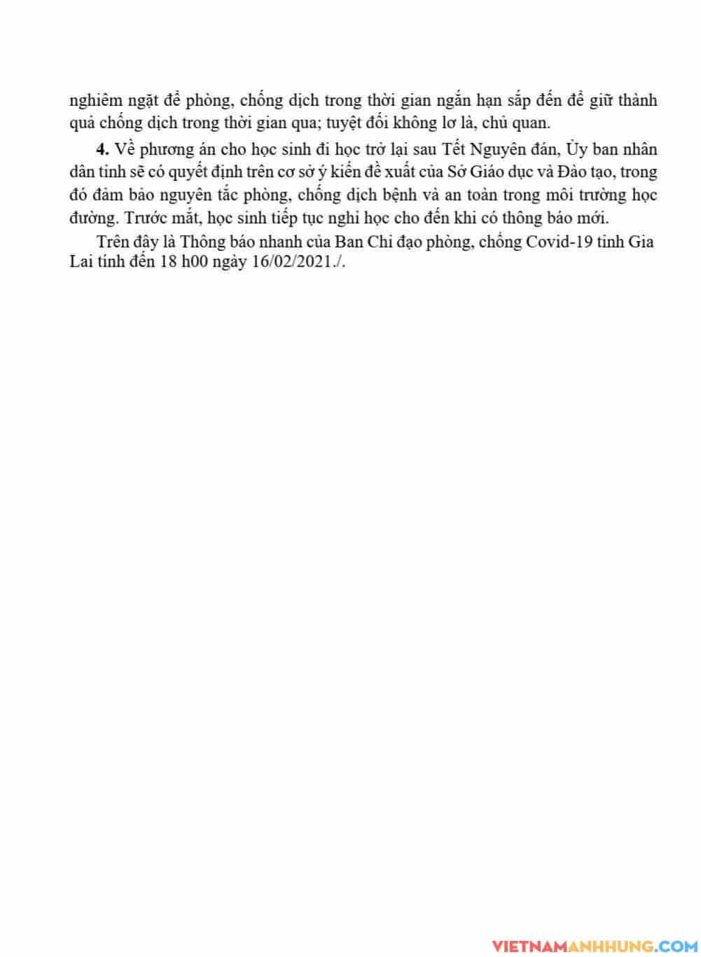 Tin nóng: Gia Lai cho học sinh nghỉ học hết 28/02/2021
