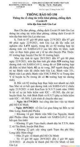 Thông báo số 150: Liên quan đến tình hình phòng, chống dịch Covid-19 trên địa bàn tỉnh