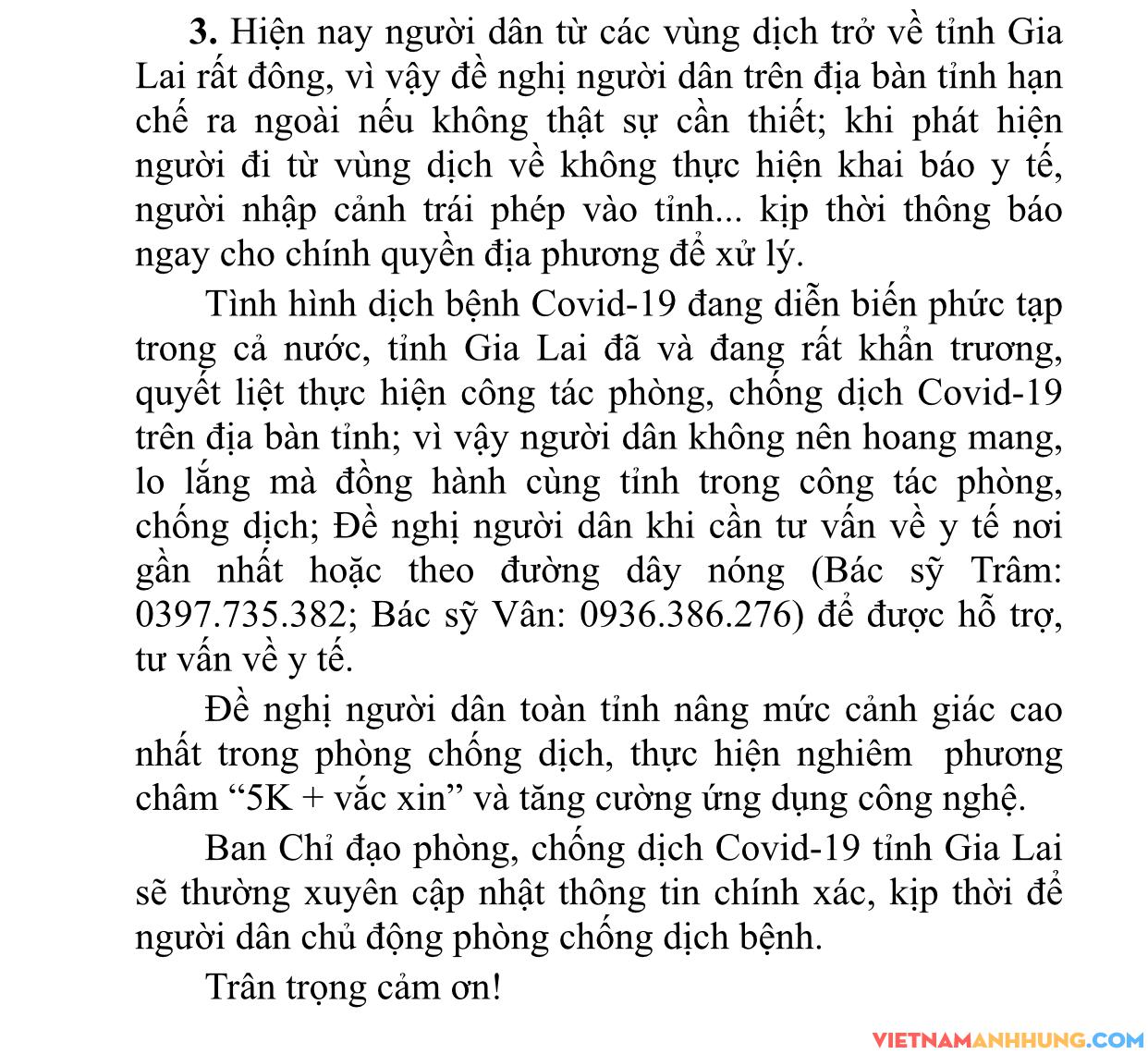 Ban Chỉ đạo phòng, chống dịch Covid-19 tỉnh Gia Lai tiếp tục thông tin về công tác triển khai phòng, chống dịch bệnh Covid-19 trên địa bàn tỉnh như sau:
