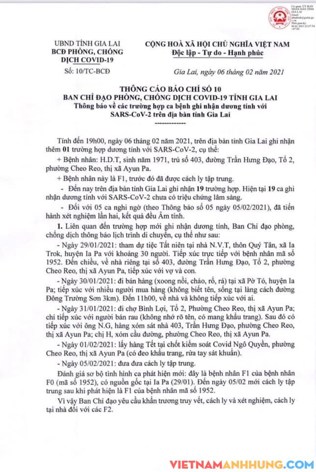 Văn phòng UBND tỉnh Gia Lai vừa có văn bản số 3190/VP-KGVX thông báo ý kiến của Trưởng ban Chỉ đạo phòng-chống...