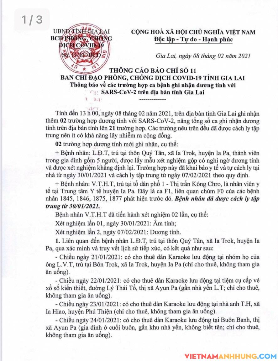 Thông cáo báo chí số 11 về tình hình phòng, chống dịch Covid-19