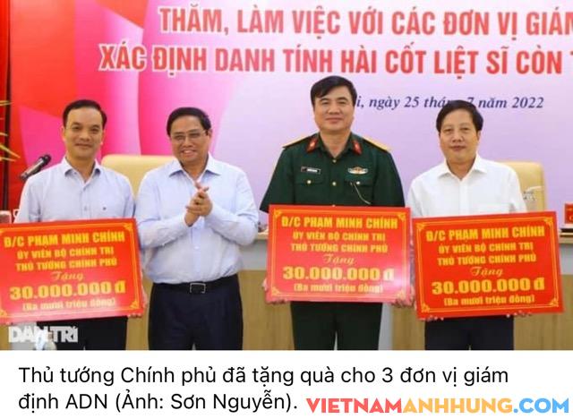 Cũng tại buổi làm việc, Thủ tướng đã tặng quà cho 3 đơn vị giám định ADN, trao kết quả giám định ADN và trao sổ tiết kiệm cho các gia đình liệt sĩ.