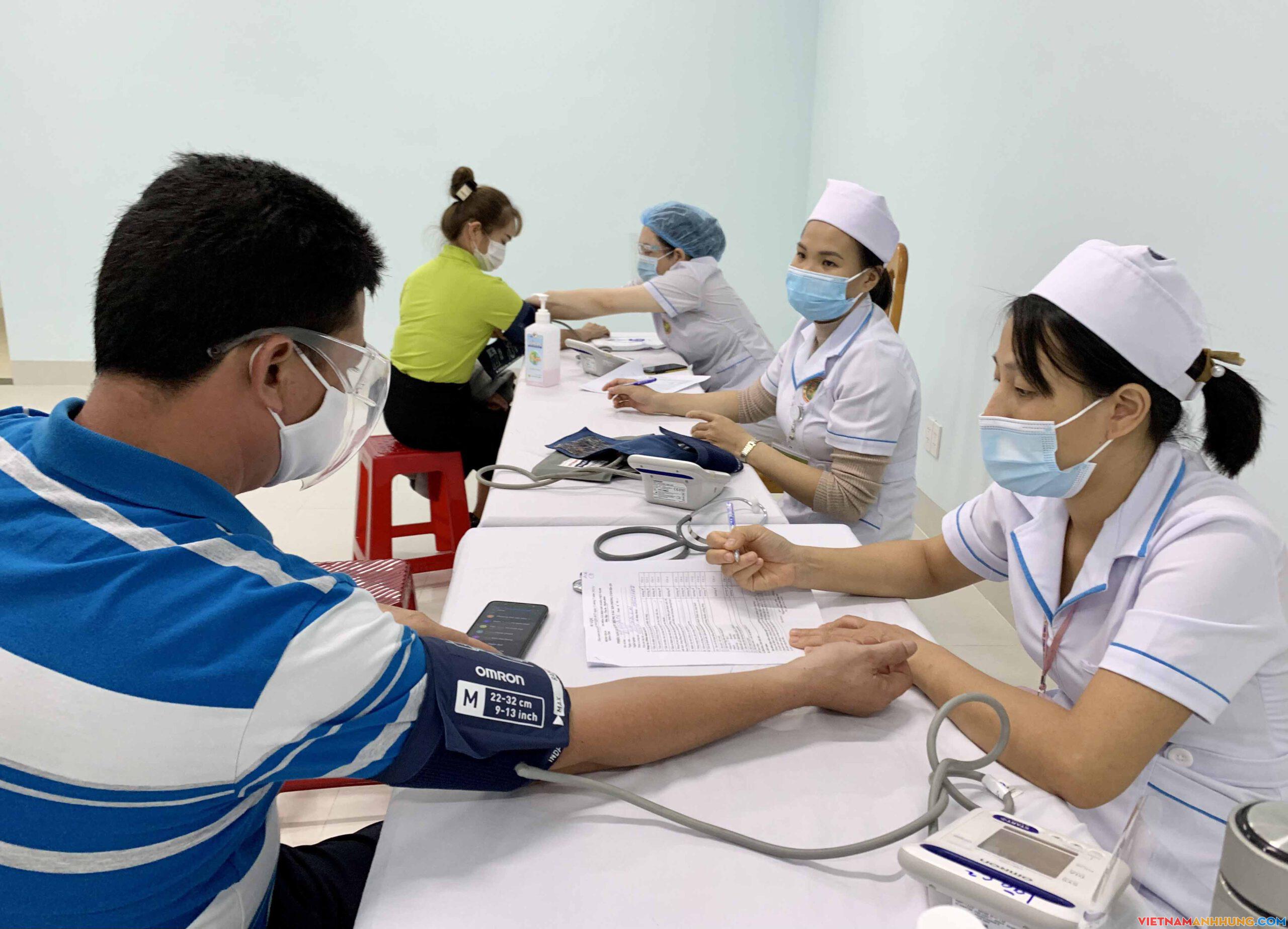 Các đối tượng được khám sàng lọc trước khi tiêm để đảm bảo an toàn tiêm chủng. Ảnh: Như Nguyện