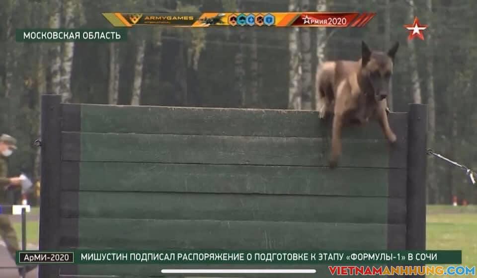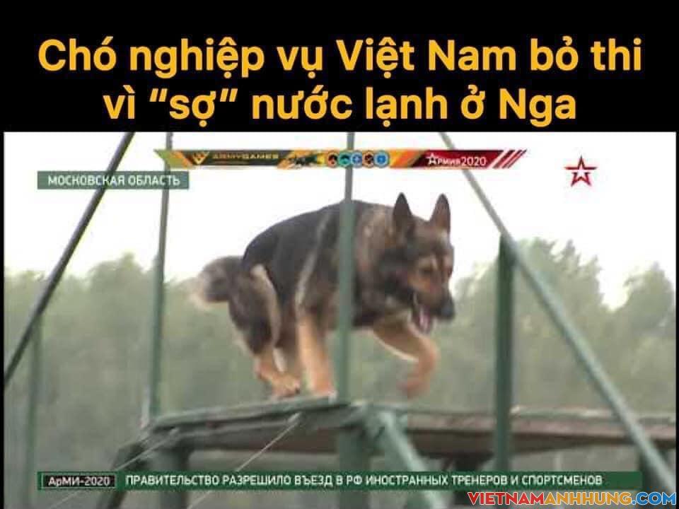 Hành động “bỏ thi” của chó nghiệp vụ Việt Nam khiến khán giả xem cuộc thi bật cười, còn kênh truyền hình quân đội Nga nhận định là do… nước lạnh quá nên em ấy không dám nhảy xuống.