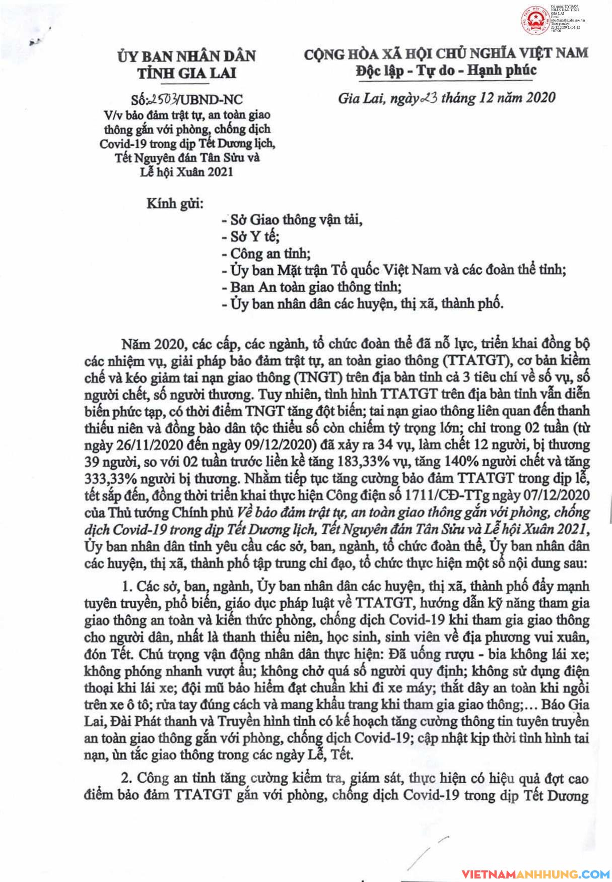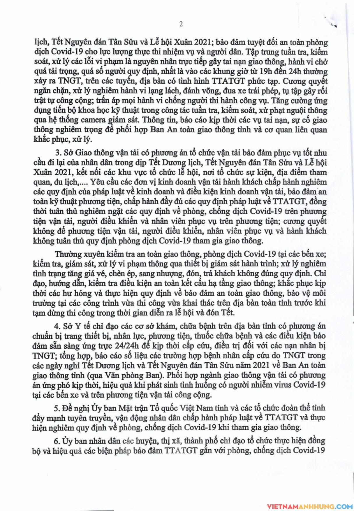 Công văn của UBND tỉnh về việc bảo đảm trật tự, an toàn giao thông gắn với phòng, chống dịch Covid-19 trong Dịp Tết Dương lịch, Tết Nguyên đán Tân Sửu và Lễ hội Xuân 2021