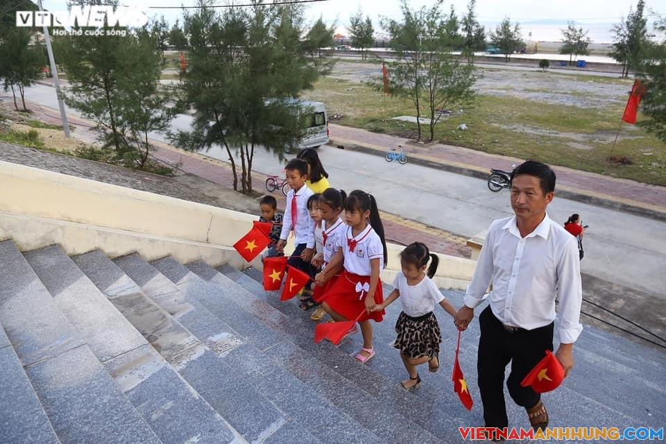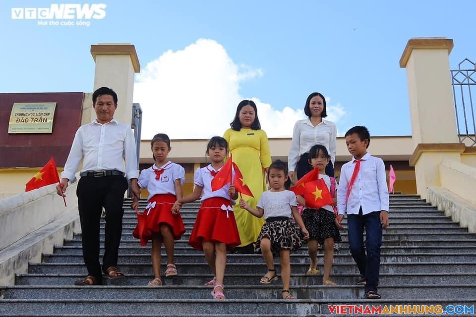 Những hình ảnh trong lễ khai giảng đặc biệt của 7 học sinh và 2 thầy cô trên hòn đảo tiền tiêu phía Bắc của nước ta, khiến nhiều người xúc động.